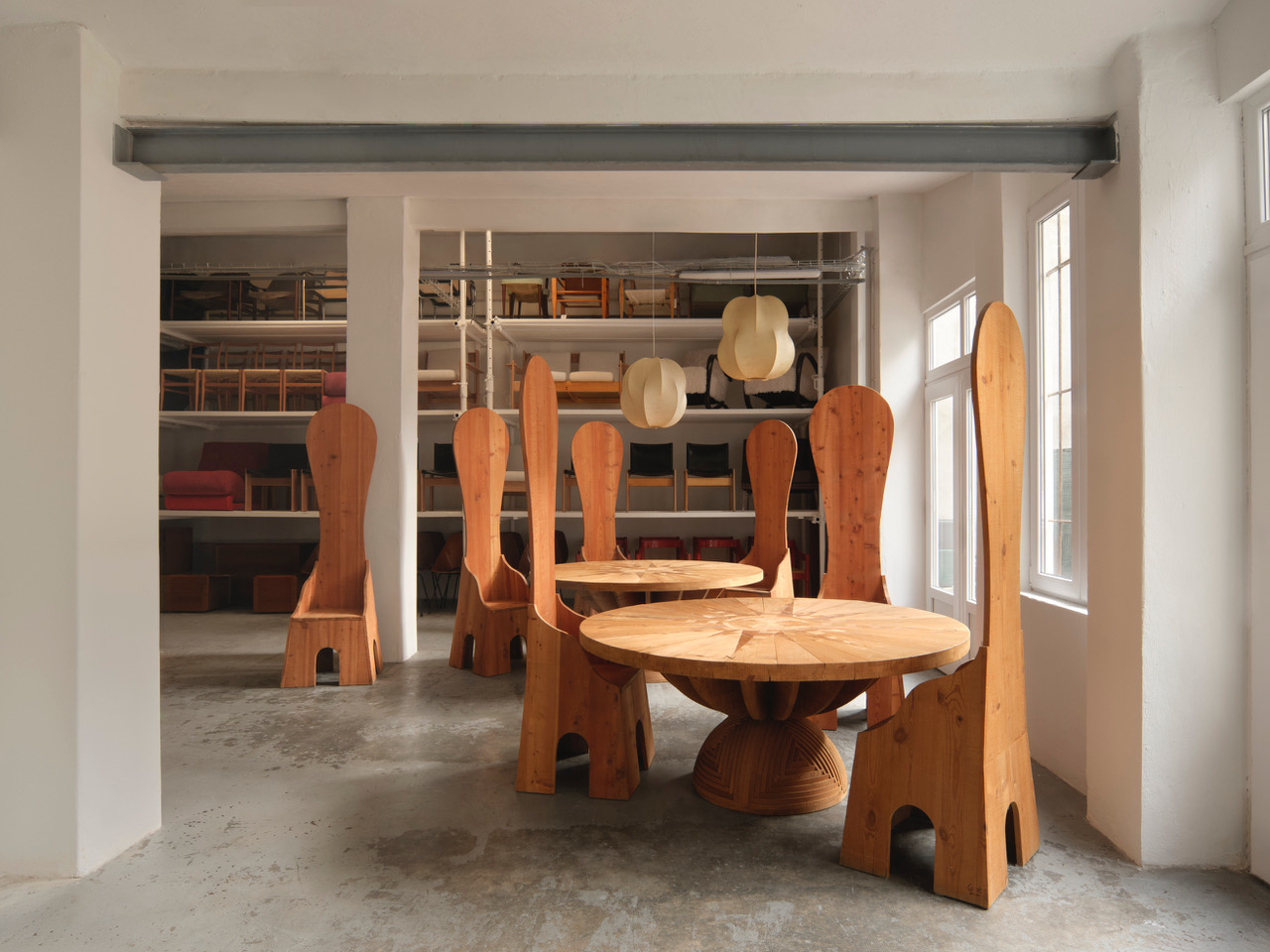 In mostra ci sono varie sedie, tavoli, divani, una cassettiera, una poltrona e la struttura di un letto, tutti parte della collezione “Mobili nella Valle” che trae ispirazione da una serie di 20 dipinti realizzati da Giorgio De Chirico, dove l’artista crea scene volutamente stranianti posizionando oggetti comuni in contesti irreali, portando l’osservatore a riflettere sulla retorica del mobile come archetipo dell’intimità e del vissuto familiare e innescando dei processi di percezione inconscia che trasformano l’oggetto d’arredo in segno, simbolo.