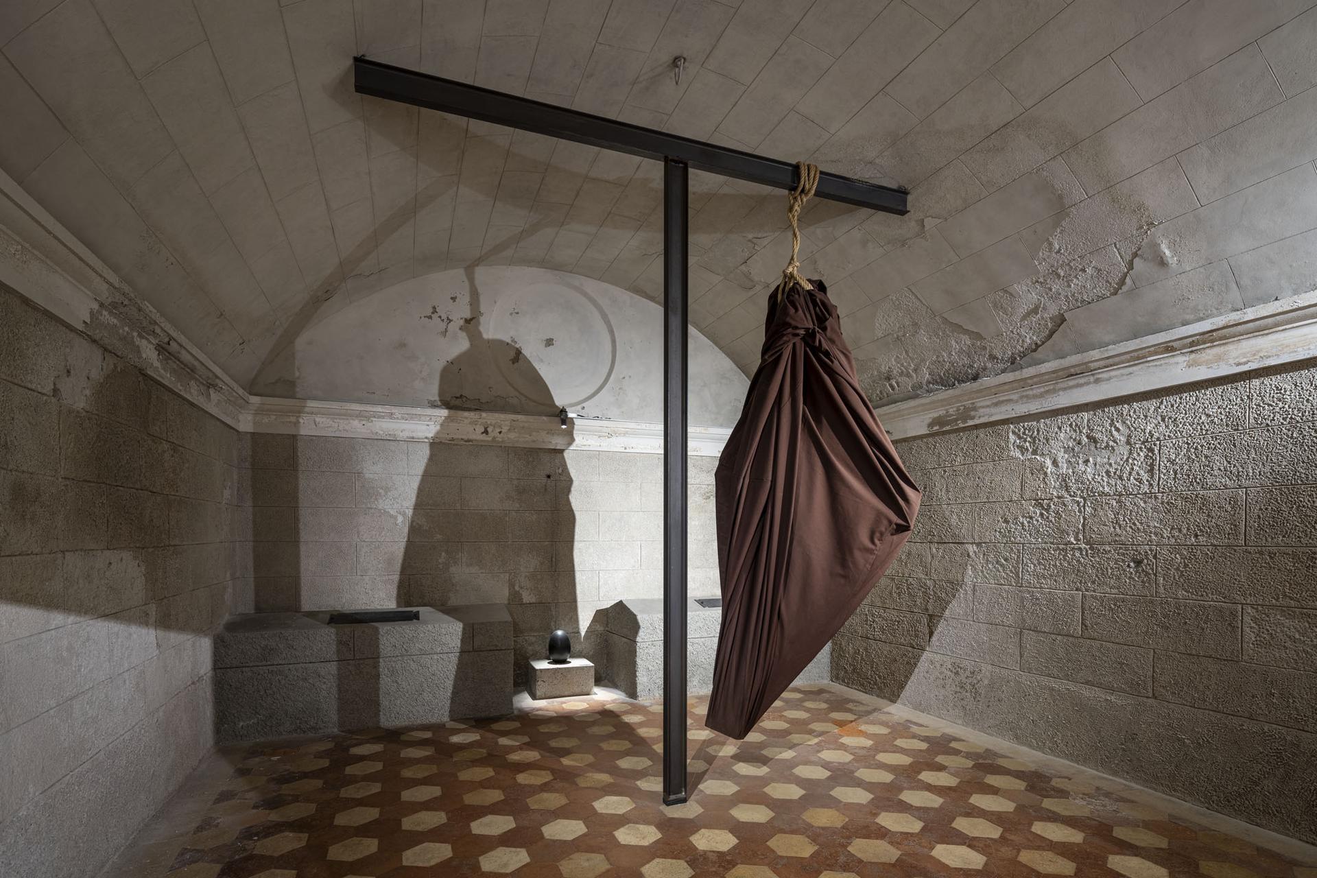 Nella cripta della Chiesa di San Fedele, l’opera permanente di Jannis Kounellis Senza titolo, Svelamento, 2012 è posta in dialogo con un’opera di Andy Warhol, prestito della Galleria Fumagalli.