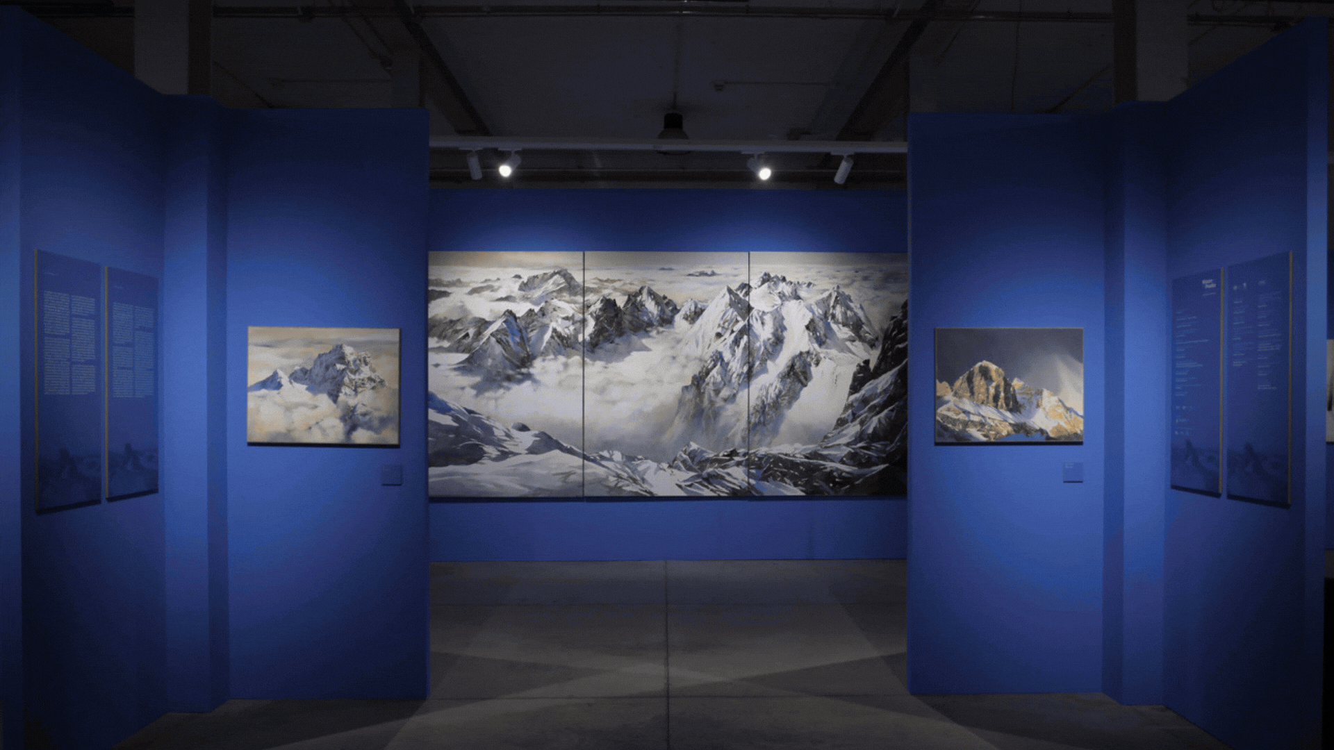 Esposti 30 acquerelli, anche di grandissime dimensioni, 2,3 x 4,5 metri, dedicati ai luoghi delle Olimpiadi invernali. La pittura come linguaggio vivo per raccontare le montagne di Milano Cortina. Compaiono inoltre alcuni album preziosi dedicati agli studi e alla didattica, nonché fotografie dell’artista al lavoro. Il progetto espositivo e l’allestimento, firmati dall’architetto Michele Piva, puliti ed essenziali, sono di grande fascino e impatto e sottolineano il virtuosismo dell’artista. Il percorso è amplificato dalla presenza di una video-installazione prodotto da Alps che accompagna il pubblico alla scoperta dello sguardo peculiare dell’artista.