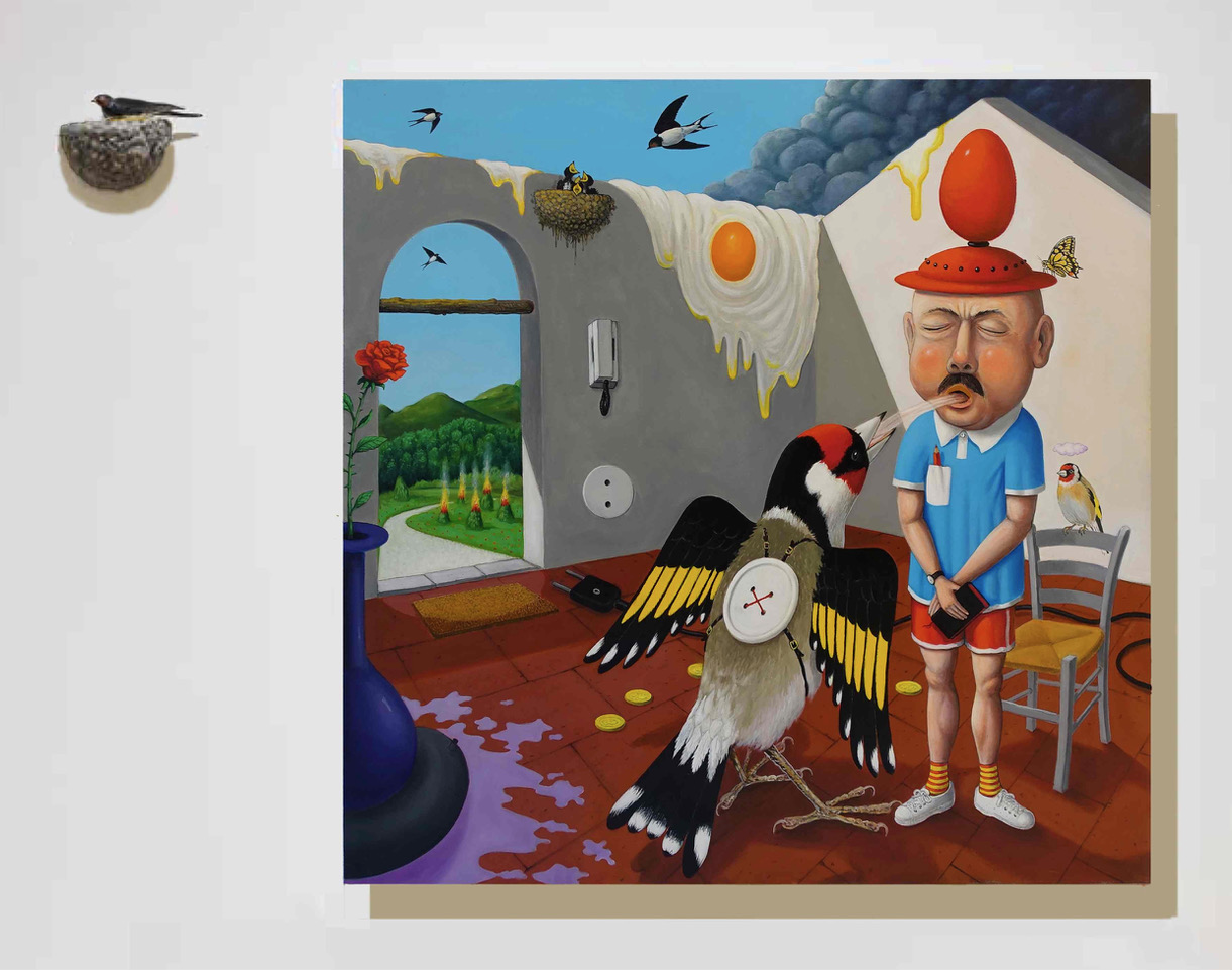 Oltre a Tentativo di volo di Gino De Dominicis, in mostra anche opere di Giuseppe Uncini, Leoncillo, Sabrina Mezzaqui, Flavio Favelli, Serse e alcuni manufatti più antichi: medaglie devozionali e reliquari che testimoniano il culto di cui ha goduto il Santo nel corso dei secoli.